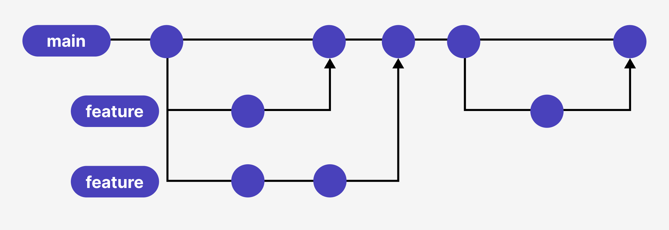 GitHub Flow 모델은 빠르고 지속적인 배포를 목표로 하며, master 브랜치 하나와 기능 개발을 위한 브랜치들만을 사용한다.